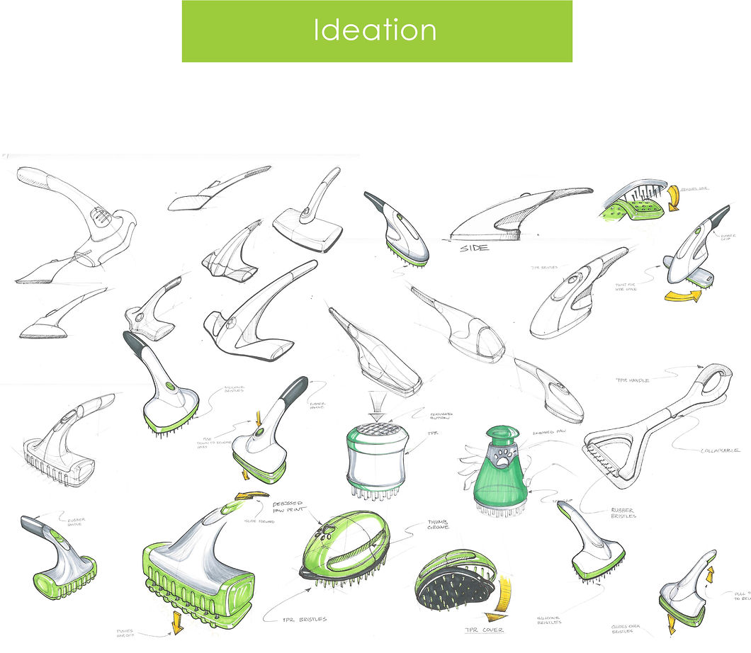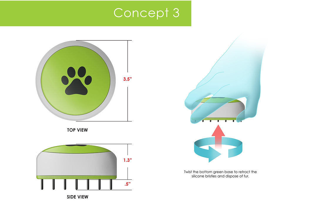 Design and develop a pet brush that allows users to easily remove pet hair after every use. The end form should be universal and ergonomic.​